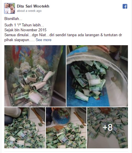 After all collected for 1.5 years he decided to dismantle the savings, and then post on his Facebook account. Until now the post has been shared 78,342 times, and already get 83,000 likes.